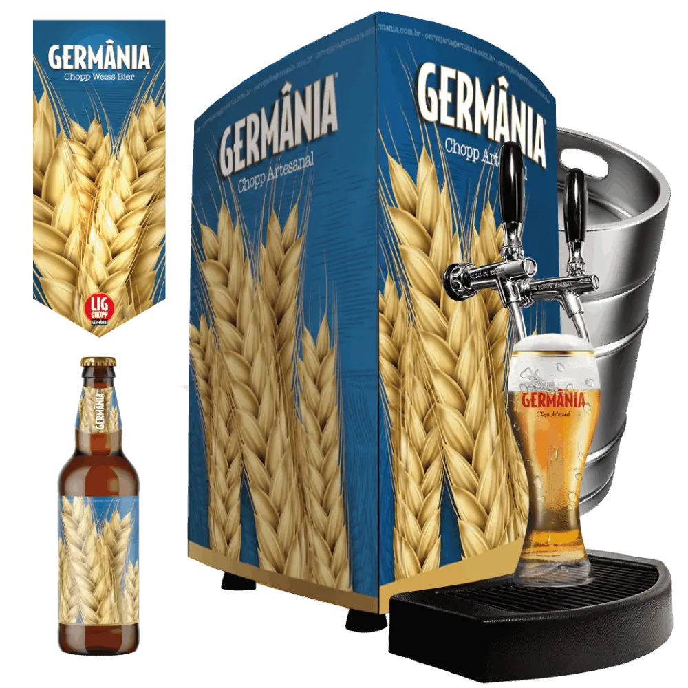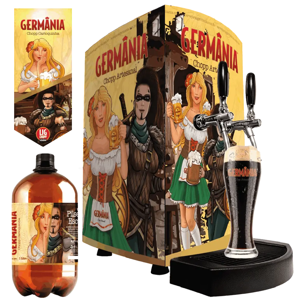 A Cervejaria Germânia disponibiliza dois modelos de chopeiras para sua escolha. Na compra da choperia Germânia você recebe o cartão Degustador Oficial Germânia, com ele é possível resgatar o valor total pago na chopeira em créditos de chopp.