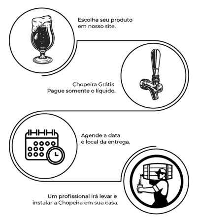 Não se preocupe com isopor, gelo ou espaço na geladeira. Fornecemos toda a estrutura e um chopp gelado em 5 minutos.